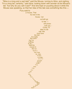 גם טקסט כתוב וערוך לתלפיות עדיין איננו גמור: הוא עירום, ובטרם יגיע אל הקוראים, יש להלבישו, כלומר לעצב אותו. אותו טקסט עצמו עשוי להשאיר על הקורא רושם שונה לחלוטין אם יעוצב בדרכים שונות – דוגמה בלתי נשכחת לעניין זה היא The mouse's tale, סיפורו של העכבר, מ"אליס בארץ הפלאות", שאליס, הסבורה בטעות שמדובר בזנב (tail) במקום בסיפור (tale), רואה אותו בעיני רוחה כפי שהוא מופיע בתמונה למעלה.