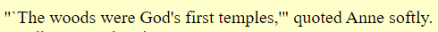 מונטגומרי כותבת בפירוש שמדובר בציטוט; היא אינה כותבת של מי, אולי משום שהניחה שקוראיה יכירו את השיר ואולי משום שסמכה עליהם שיחפשו אם ירצו. אבל אני לא זכרתי את המשפט כציטוט, אלא כמחשבה יפה של אן עצמה. מה בדיוק נאמר בתרגום שקראתי?