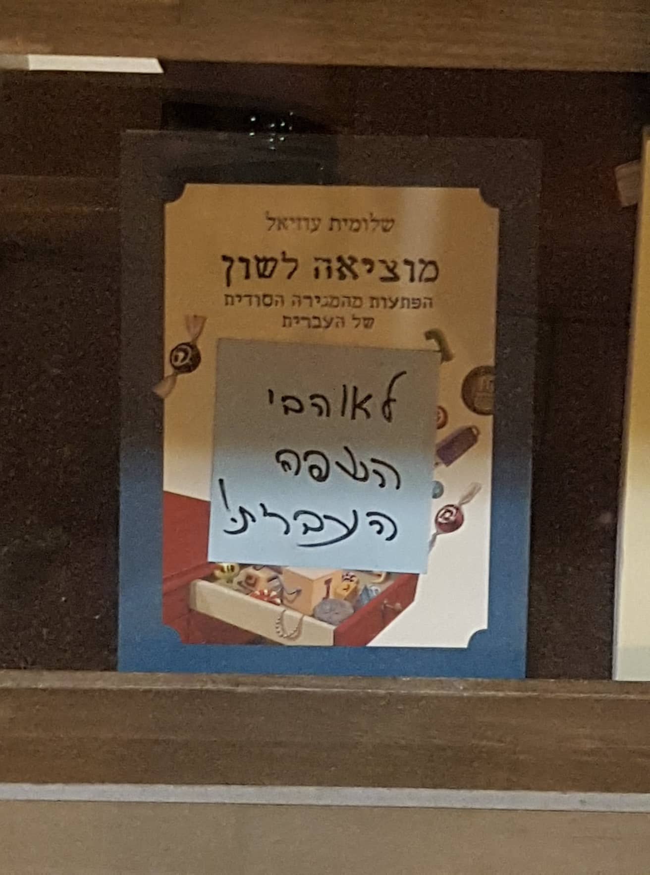 והצעת הגשה מומלצת לחנויות הספרים: פורת ספרים ברמת גן מיקמו את "מוציאה לשון" בחלון הראווה בצירוף פתק קצר וקולע. תודה רבה לחמוטל ילין שצילמה ושלחה.