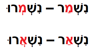 אם נסתכל לרגע על צמד המילים "נִשְׁמַר – נִשְׁמְרוּ", נראה בקלות שאי-אפשר פשוט "לחתוך" את "נשמר" מ"נשמרו", משום שה"מ" מקבלת תנועה שונה בכל אחת משתי המילים. הצמד "נשאר – נשארו" מתנהג מעט אחרת, משום שה"א" גרונית; אך אף שהצליל זהה, הניקוד משמר את ההבדל: