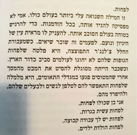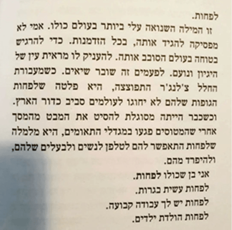 עדיין בעניין ההורים, גיבור "רכבת הבוקר לפריז" מאת ז'אן-פיליפ בלונדל מתעב את המילה "לפחות", החביבה על אמו. נשמע אותו בתרגומה של רמה איילון: