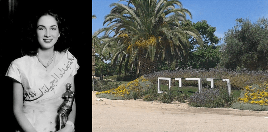 בראש הפוסט מימין: בקיבוץ נירים; משמאל, מלכת היופי של בגדד בשנת 1947, רנה דנגור.