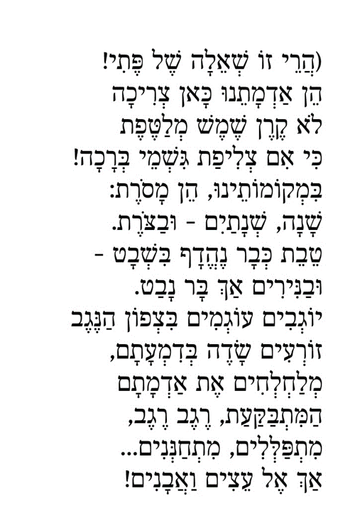ובהמשך (אם כי נדייק כי הקיבוץ המופיע ללא ציון שם ב"מקום אחר ועיר זרה" נמצא דווקא בצפון הארץ):