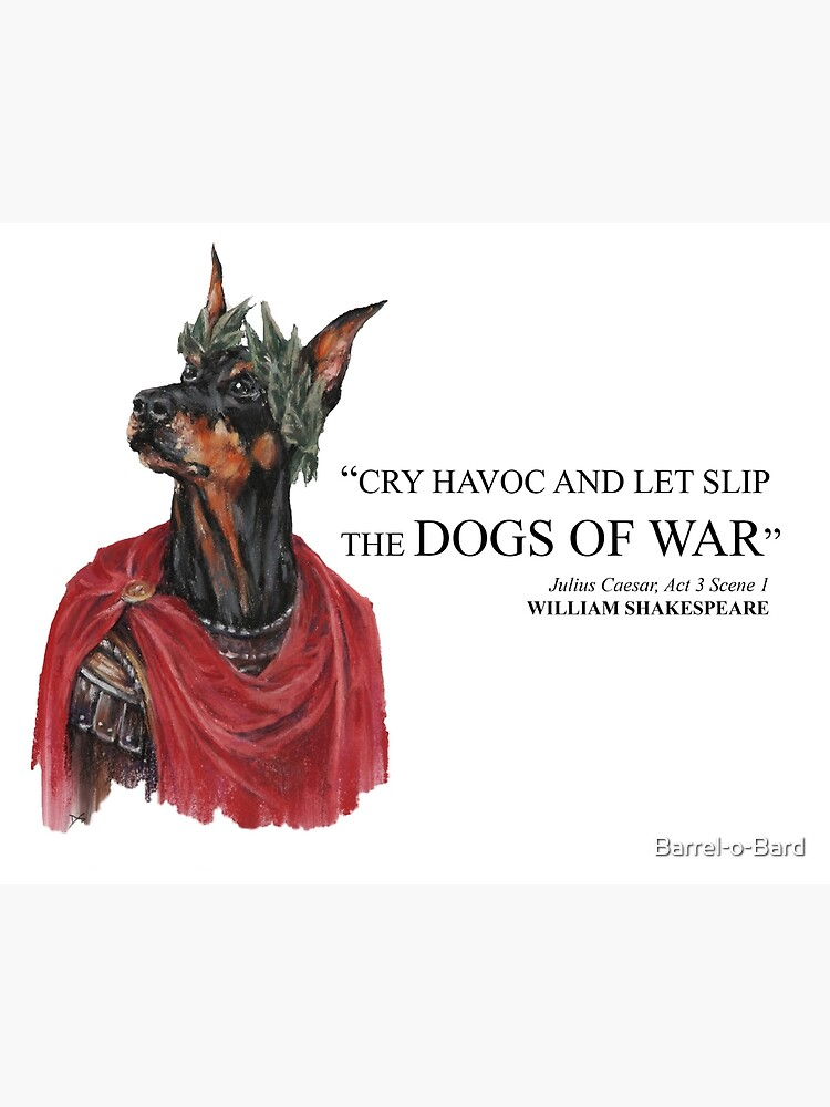 It's from a play my father liked. 'Cry havoc, and let slip the dogs of war.' He's definitely, I don't know, one of the dogs of war.