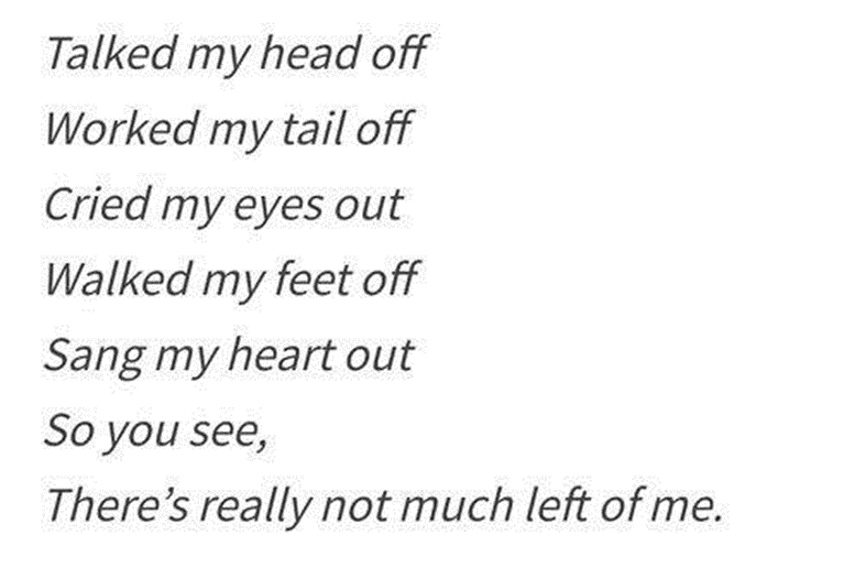 שעשוע כזה מציע לנו של סילברסטיין ("העץ הנדיב") בשיר "Losing Pieces", המבוסס גם הוא על מימוש מילולי של ביטויים: