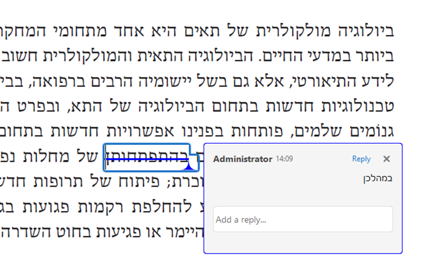 מתקבלת חלונית. כתבו בה את הטקסט שברצונכם להוסיף בנקודה הזאת: