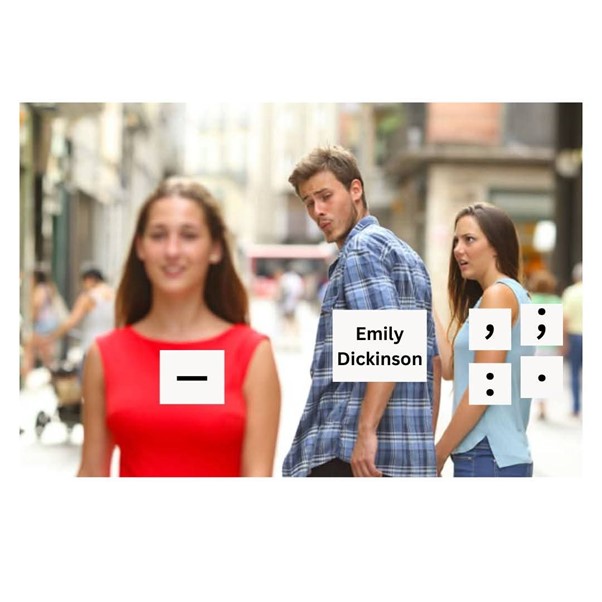 המשוררת אמילי דיקינסון ידועה במיוחד בשימוש האופייני שלה בסימן פיסוק מסוים – האֶם דאש (em dash), שהוא המקבילה באנגלית לקו המפריד של העברית. נתעכב רגע כדי להבין מהו הקו המפריד. אין לבלבל בינו לבין המקף, שתפקידו הפוך: המקף מחבר בין מילים ויוצר צירוף, כמו "בית־ספר", ואילו הקו המפריד, כפי שמעיד שמו, מפריד. קו מפריד נראה כך – קו אופקי ארוך בגובה אמצע השורה, עם רווחים בשני הצדדים, ומטרתו העיקרית היא הפרדה בין חלקי משפט. הקו המפריד יכול לציין, בין היתר, עצירה ארוכה יותר מפסיק או חלק שהושמט במשפט. כך אנחנו יכולים לומר למשל "יובל אוהב כלבים ומיה – חתולים".