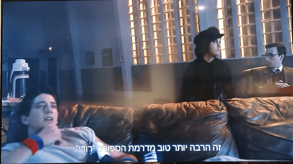 עוד פתרון פופולרי מאוד בנסיבות כאלה הוא הנהרה, כלומר הגנבת הסבר קצרצר בגוף הטקסט עצמו. הנהרה קלילה עשויה להיראות כך, למשל – "מדהים כמה הוא יודע על ספרות מאז שהרדיו במכונית שלו נתקע על רדיו 4 והוא לא יכול לשמוע את התוכנית של טרי ווגאן". אבל פה, שוב, כדאי בעיניי להיזהר מלזלזל בכושר ההבנה של הקוראים על חשבון חוויית הקריאה שלהם. הרי מהמשפט עצמו ברור שמדובר ברדיו, ולכן התוספת "התוכנית של" אינה מוסיפה משהו שלא ידענו, ולעומת זאת הופכת כתיבה קלילה, חיננית ואינטימית (הרי אדריאן, כביכול, כותב ביומן שלו) לקצת יותר פורמלית. התמונה שלמעלה היא דוגמה אמיתית להנהרה מסוג זה, צילום מסך מסדרת הטלוויזיה School Spirits עם כתובית בעברית (אני ראיתי את הכתובית בסטרימיו). בפרק הזה בסדרה כמה נערים ונערות מתווכחים על בחירת הסרט לערב הסרט המשותף שלהם, וווֹלי חובב הספורט מציע כמה סרטים שעוסקים בספורט, שאחד מהם הוא "רודי". בסופו של דבר הם בוחרים סרט אחר, ובקטע שהתמונה לקוחה ממנו וולי אומר על הסרט הזה “This is much better than Rudy”. בכתובית נאמר "זה הרבה יותר טוב מדרמת הספורט רודי" (ההדגשה שלי). האם המשפט הזה נשמע טבעי? כנראה לא. האם, בהתחשב בהקשר, ההנהרה נחוצה? שוב, כנראה לא (ובהזדמנות זו, תודה רבה והערכה כנה למתרגמים האלמונים שמכינים ומעלים כתוביות לאתרים לצפייה חופשית, ככל שאני יודעת בהתנדבות ולטובת הכלל).